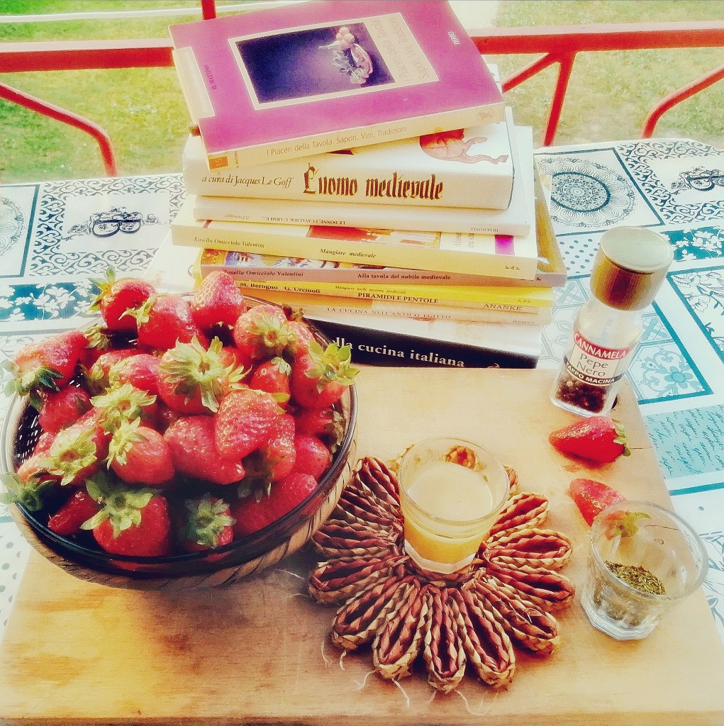 Le fragole sono proprio il frutto per eccellenza primaverile e venivano spesso consumate durante il pasto in antichità. Gli antichi romani erano soliti preparare questa prelibatezza accompagnandola al miele e alla spezia per eccellenza più importante in assoluto sui banchetti: il pepe. Sicuramente la frutta era sempre presente, infatti se facciamo un giro a Pompei possiamo trovare la Bottega del Fruttivendolo Felix alla Regio 7, composta da un banco vendita dipinto di rosso con un grande clipeo giallo ove era rappresentata una coppa con la frutta. La bottega non era molto diversa da quelle che normalmente incontriamo nelle nostre città. La Taberna pomeraria di Felix presenta un bancone affrescato con elementi riconducibili a Bacco che si affaccia direttamente sulla strada e si possono intravedere i buchi dove veniva agganciato il supporto in legno su cui esporre la mercanzia.