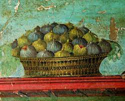 La coltivazione del Ficus carica L. è importante per l’evidenza di ben 44 varietà colturali ottenute nel tempo, cifra superata solo dall’uva e dalla pera. Il consumo era tale che se ne importavano ingenti quantità dalla Caria, dalla Siria e dall’Africa ma come si mangiavano? Gli antichi romani mangiavano i fichi freschi non come un dessert ma per accompagnare il pane: Catone riduceva da 5 libbre a 4 la razione di pane ai suoi schiavi quando era periodo di fichi perché molto calorici potevano sopperire alle carenze nutrizionali date da un’alimentazione poco completa. In campagna i contadini uscivano alle prime luci dell’alba per andare a coltivare i campi ma già a metà mattinata consumavano uno spuntino a base di pane e companatico che spesso dipendeva da cosa offriva la stagione: i fichi , ad alto contenuto zuccherino, erano il frutto preferito.
