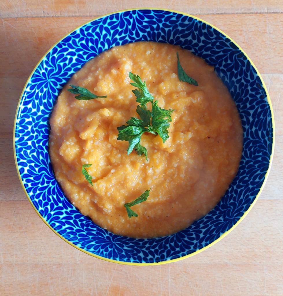 Questa ricetta prevede al dolce sapore della zucca l’aggiunta del gusto delicato del latte di mandorla e del burro. Per prepararla vi serviranno 2,5kg di zucca comune che è di stagione, 1 litro di latte di mandorla, 60 gr di burro e del sale. Per preparare il latte di mandorla basta cuocere 1 litro di acqua con 100 gr di mandorle o comprarlo gia fatto ma senza zucchero.